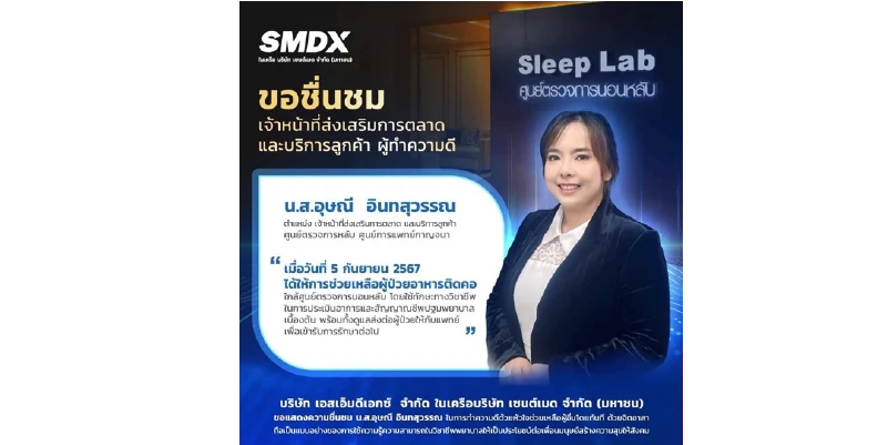 บริษัทฯ ขอแสดงความชื่นชม นางสาวอุษณี อินทสุวรรณ เจ้าหน้าที่ส่งเสริมการตลาดและบริการลูกค้า ศูนย์ตรวจการนอนหลับ ศูนย์การแพทย์กาญจนา ที่ได้ให้ความช่วยเหลือผู้ป่วยที่ประสบเหตุอาหารติดคอ บริเวณใกล้ศูนย์ตรวจการนอนหลับ เมื่อวันที่ 5 กันยายน 2567