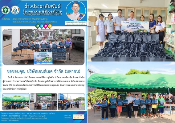 บริษัทฯ ได้มอบ ถุงยังชีพจำนวน 150 ชุด เพื่อช่วยเหลือประชาชนที่ได้รับผลกระทบจากอุทกภัยในพื้นที่ ตำบลวังทอง และตำบลวังใหญ่ อำเภอศรีสำโรง จ.สุโขทัย