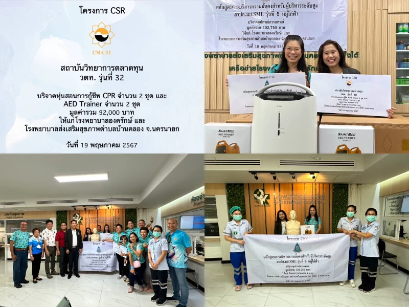 บริษัทฯ ให้การสนับสนุนด้านอุปกรณ์ฝึกอบรมทางการแพทย์ โดยการบริจาคหุ่นสอนการกู้ชีพ CPR จำนวน 2 ชุด และเครื่องฝึกใช้เครื่องกระตุกหัวใจไฟฟ้าอัตโนมัติ (AED Trainer) จำนวน 2 ชุด เพื่อเสริมสร้างทักษะการช่วยชีวิตขั้นพื้นฐานให้แก่บุคลากรทางการแพทย์ เจ้าหน้าที่สาธารณสุข และอาสาสมัครในชุมชน ให้สามารถฝึกอบรมและพัฒนาความสามารถในการช่วยฟื้นคืนชีพได้อย่างถูกต้องและมีประสิทธิภาพ