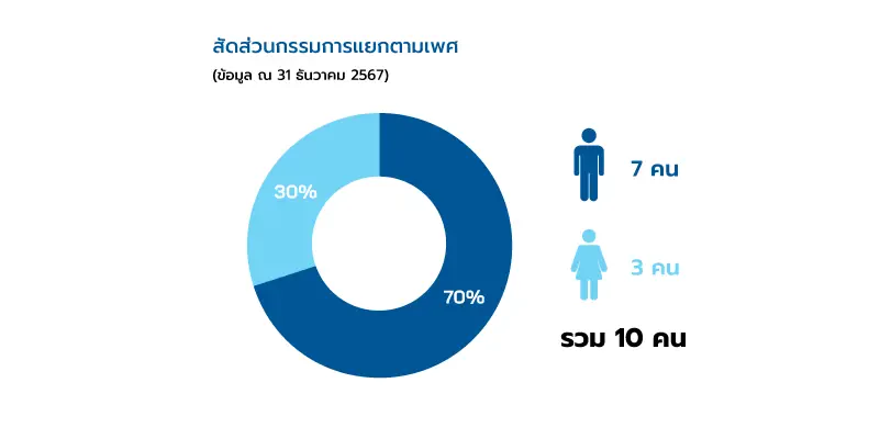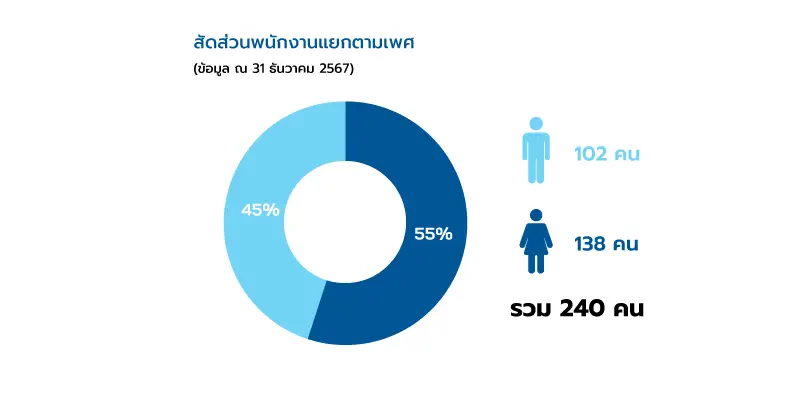 บริษัทฯ ให้ความสำคัญกับการส่งเสริมความหลากหลายและการไม่เลือกปฏิบัติในทุกระดับขององค์กร โดยยึดมั่นในหลักการเคารพสิทธิ ความเท่าเทียม และการให้โอกาสอย่างเสมอภาคแก่พนักงานและผู้มีส่วนได้เสียทุกคน โดยไม่มีการจำกัดสิทธิหรือเลือกปฏิบัติบนพื้นฐานของเชื้อชาติ เพศ เพศสภาพ อายุ ศาสนา วัฒนธรรม ความเชื่อ ความพิการ หรือสถานะทางสังคม ทั้งนี้ บริษัทฯ สนับสนุนและให้ความสำคัญกับความเสมอภาคทางเพศ โดยมุ่งมั่นสร้างสภาพแวดล้อมการทำงานที่เท่าเทียมและเป็นธรรม เปิดโอกาสให้บุคคลทุกเพศ รวมถึงผู้ที่มีอัตลักษณ์ทางเพศที่หลากหลาย ได้รับการปฏิบัติอย่างเสมอภาคในทุกด้าน ไม่ว่าจะเป็นโอกาสในการเข้าทำงาน ความก้าวหน้าในสายอาชีพ รวมถึงการเข้าถึงสวัสดิการที่ครอบคลุม โดยไม่มีการเลือกปฏิบัติหรือกีดกันในรูปแบบใด ๆ นอกจากนี้ บริษัทฯ ยังดำเนินการตามแนวทางของสำนักงานคณะกรรมการกำกับหลักทรัพย์และตลาดหลักทรัพย์ (ก.ล.ต.) ที่กำหนดให้บริษัทจดทะเบียนมีสัดส่วนกรรมการที่เป็นสตรีไม่น้อยกว่า 30% เพื่อส่งเสริมบทบาทของสตรีในระดับบริหารและคณะกรรมการบริษัท ซึ่งบริษัทฯ ได้ดำเนินการอย่างต่อเนื่อง เพื่อสนับสนุนความหลากหลายและเสริมสร้างความแข็งแกร่งในตลาดทุนไทย