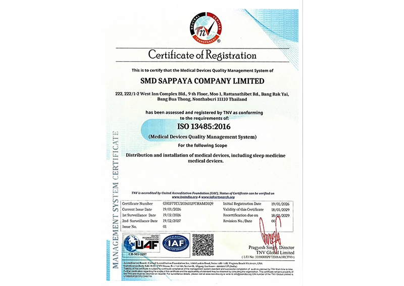 “SMD100 ปลื้ม บริษัทย่อย “SMD Sappaya” ผ่านการรับรองมาตรฐาน ISO 13485:2016 ตอกย้ำศักยภาพธุรกิจอุปกรณ์การแพทย์ด้านเวชศาสตร์การนอนหลับและเครื่องมือแพทย์ด้านเวลเนส เสริมความเชื่อมั่นตลาดสุขภาพ”